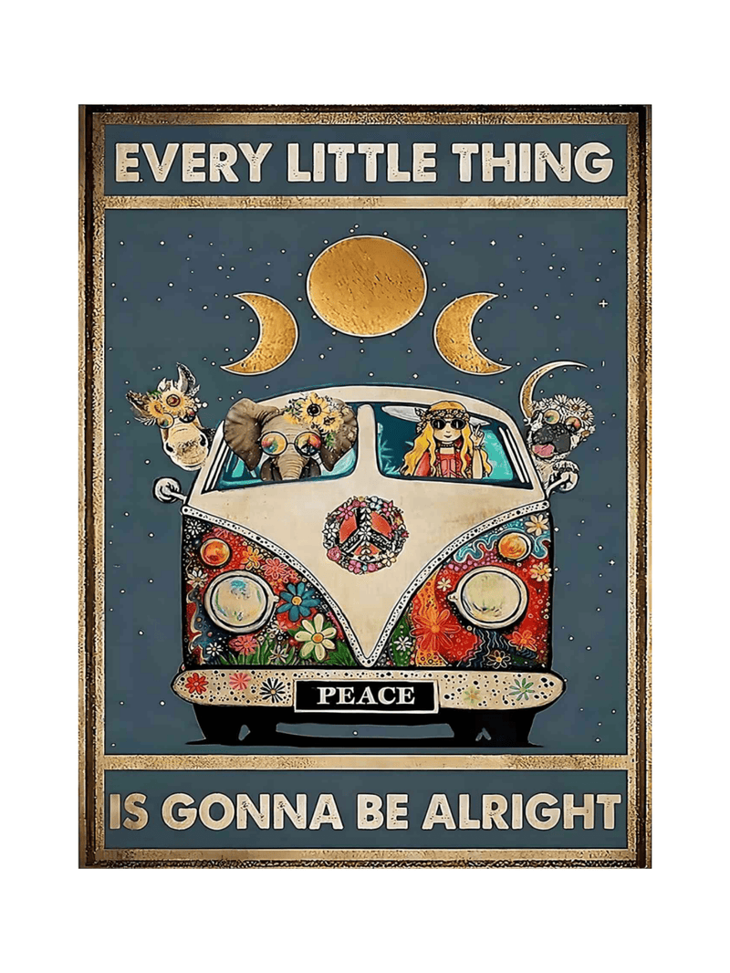 Featuring a charming bus and moon print, this metal tin sign adds character to any space. Enhance your décorwith this unique design and bring a touch of whimsy to your home. Made with high-quality materials, this sign is both durable and stylish.