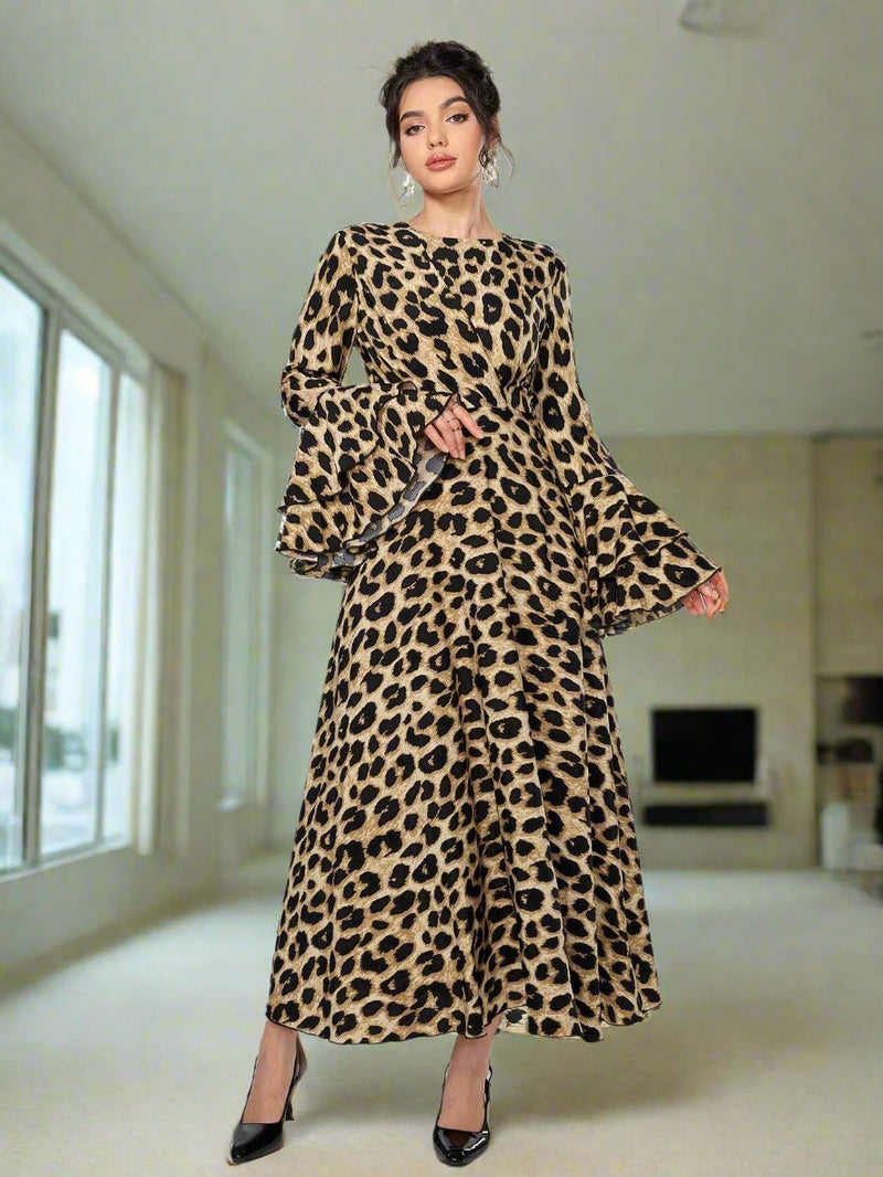 Discover the perfect blend of bold style and effortless elegance with our Leopard Print Flared Sleeve Dress. This eye-catching piece features a playful leopard print that adds a touch of wild sophistication to any wardrobe. The flared sleeves create a flattering silhouette while allowing for comfortable movement, making it ideal for both casual outings and special occasions. Pair it with your favorite heels or ankle boots for a chic look that exudes confidence. Whether you're hitting the town or enjoying a brunch with friends, this dress is sure to turn heads and keep you feeling fabulous. Embrace your fierce side and make a statement with this stunning addition to your collection!