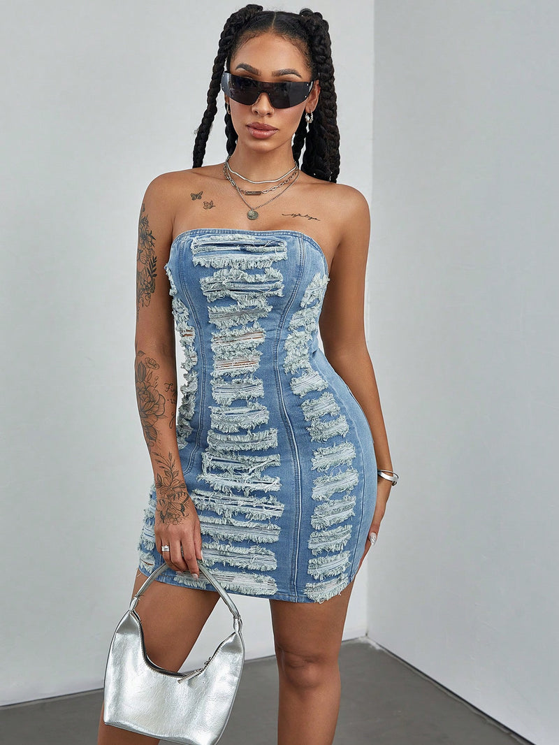 Experience the ultimate seduction this summer with our Women's Backless Cross Bodycon Denim Dress. This beautifully crafted dress is designed to hug your curves and accentuate your figure, making you feel confident and irresistible. The backless design adds a touch of sensuality, perfect for a night out. This timeless silhouette is perfect for a Christmas party where you want to look effortlessly chic. Pair it with some heels and a clutch for a polished finish.
