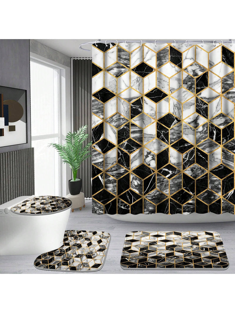 Upgrade your bathroom to a luxurious spa-like experience with our Honeycomb Marble Bathroom Bliss: 4-Piece Shower Curtain Set. The elegant honeycomb marble design will add a touch of sophistication to any bathroom while the 4-piece set provides convenience and functionality. Upgrade your self-care routine with this must-have bathroom essential.