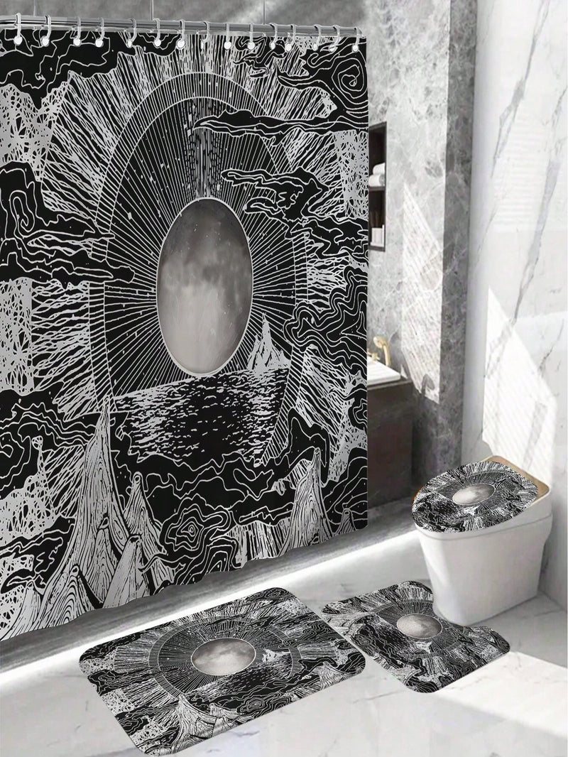 Elevate your bathroom's aesthetic with our Modern Minimalist Geometric 4-Piece Bathroom Set. Featuring a stylish line art shower curtain, non-slip rug, toilet cover, and 12 hooks, this set combines functionality and modern design. Enjoy a cohesive, sleek look while keeping your bathroom clean and slip-free.