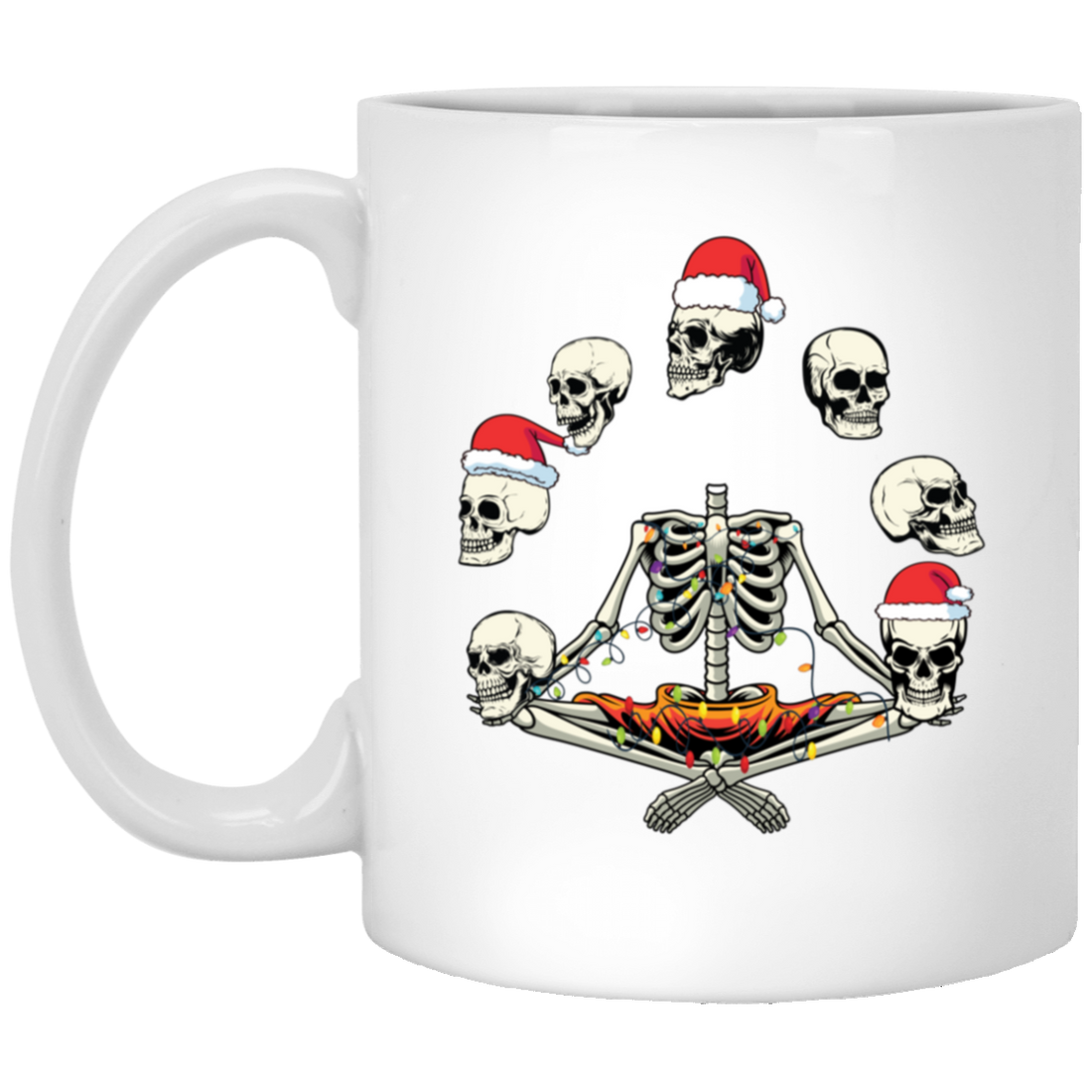 Happy Halloween, Funny Halloween, Skeleton Play With Skulls, Merry Christmas, Trendy Christmas White Mug