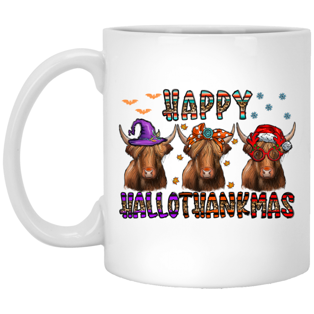 Happy Halloween Happy Thanks Giving Merry Christmas 3 Buffallo White Mug