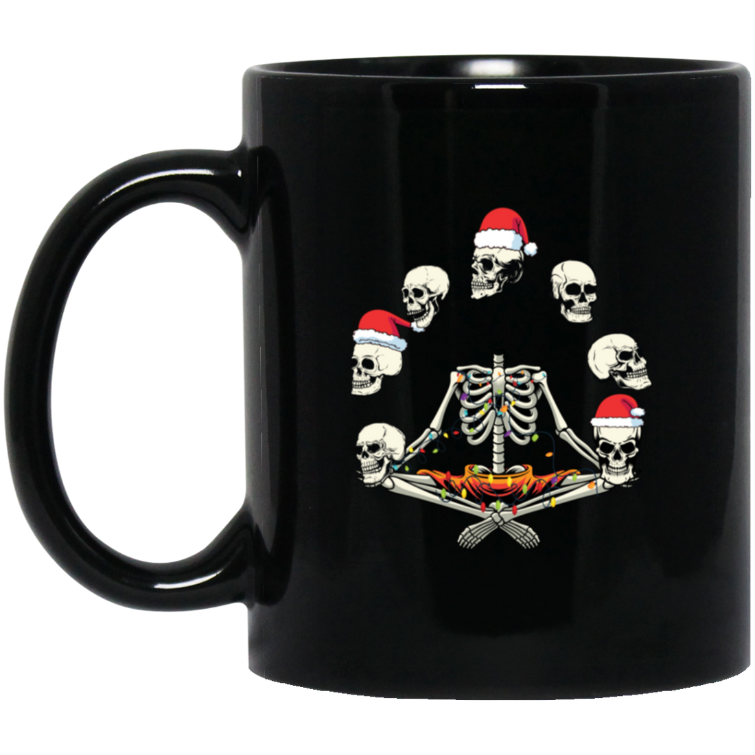 Happy Halloween, Funny Halloween, Skeleton Play With Skulls, Merry Christmas, Trendy Christmas Black Mug