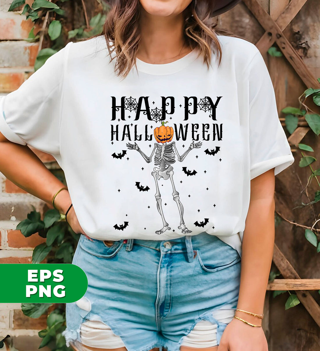 Happy Halloween, Funny Skeleton, Pumpkin Head, Black Bats, Digital Files, Png Sublimation