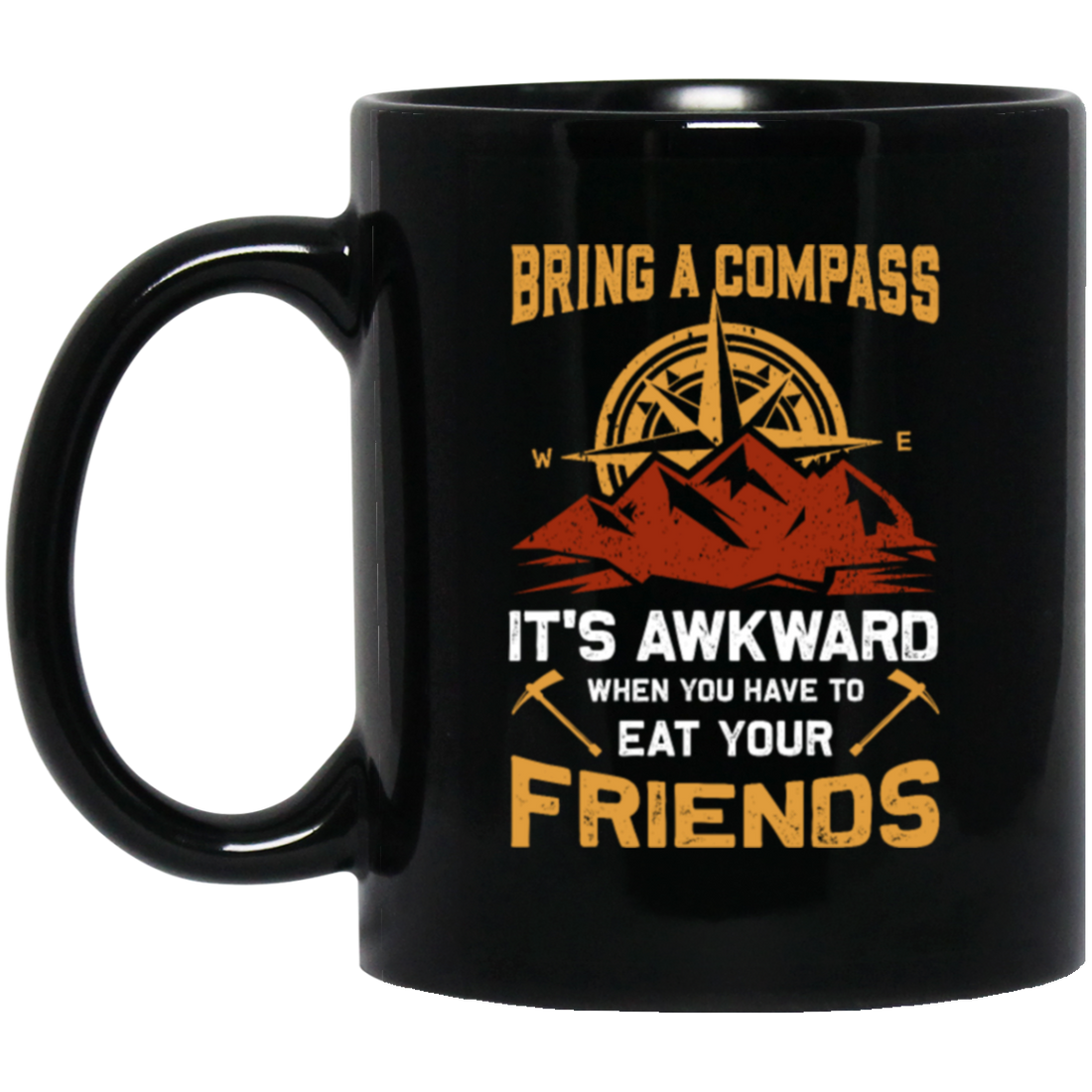 Bring A Compass It_s Awkward When You Have To Eat Your Friends, Retro Compass Black Mug