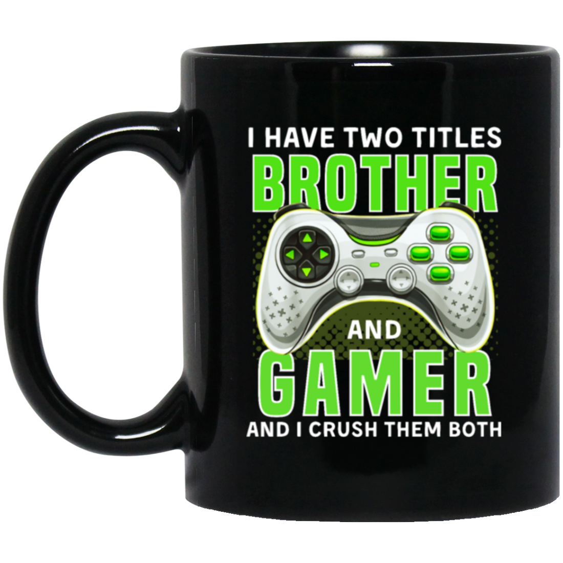 Brother Gift, I Have Two Title Brother And Gamer, I Crush Them Both Black Mug