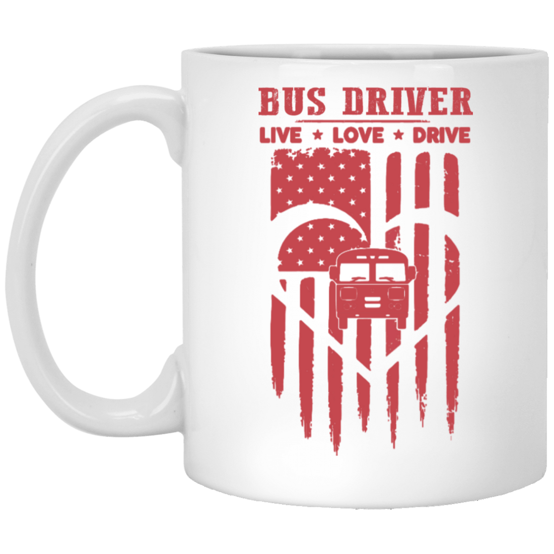 Bus Driver, Live Love Drive, Love By Heart, Love Bus Driver, Driver Gift White Mug