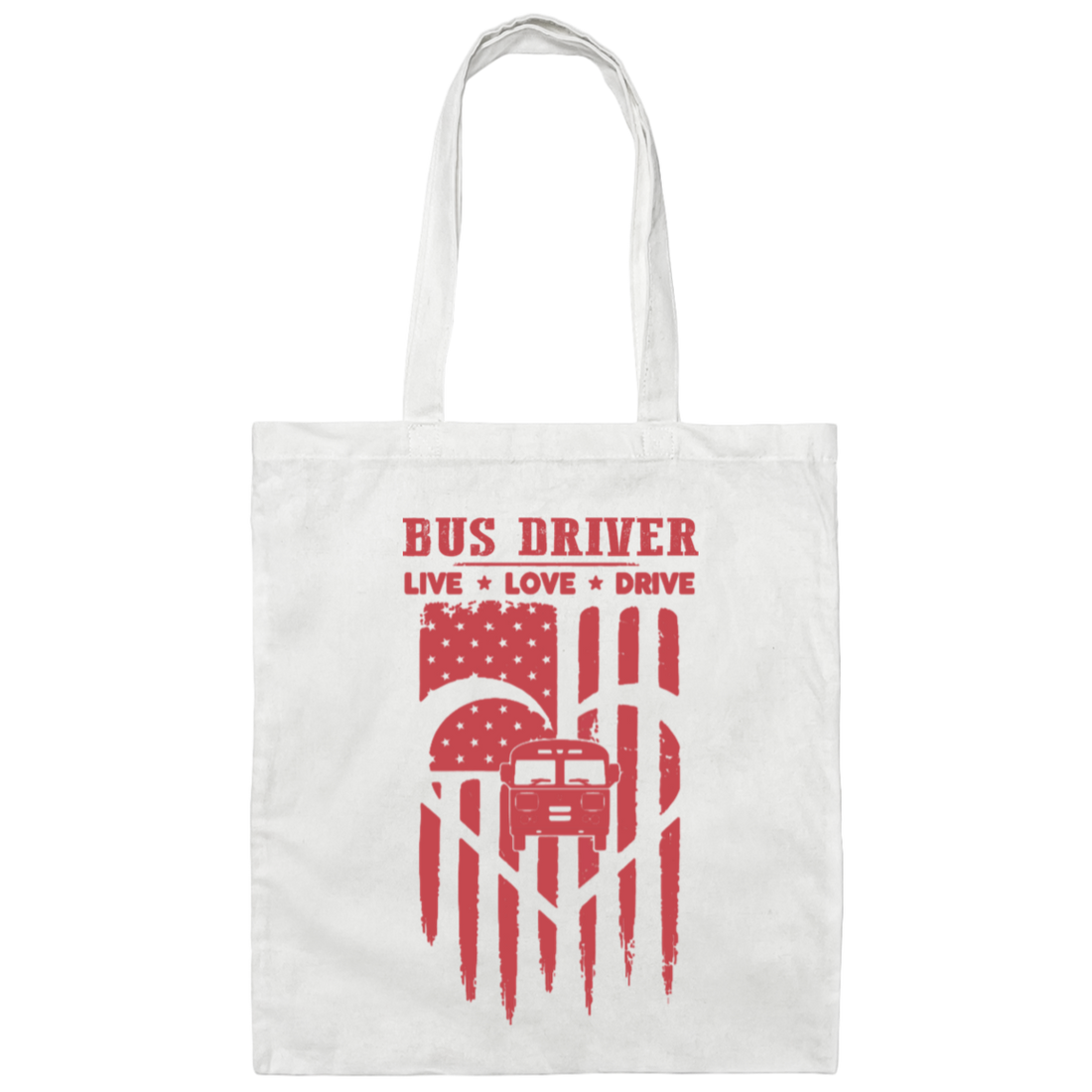 Bus Driver, Live Love Drive, Love By Heart, Love Bus Driver, Driver Gift Canvas Tote Bag