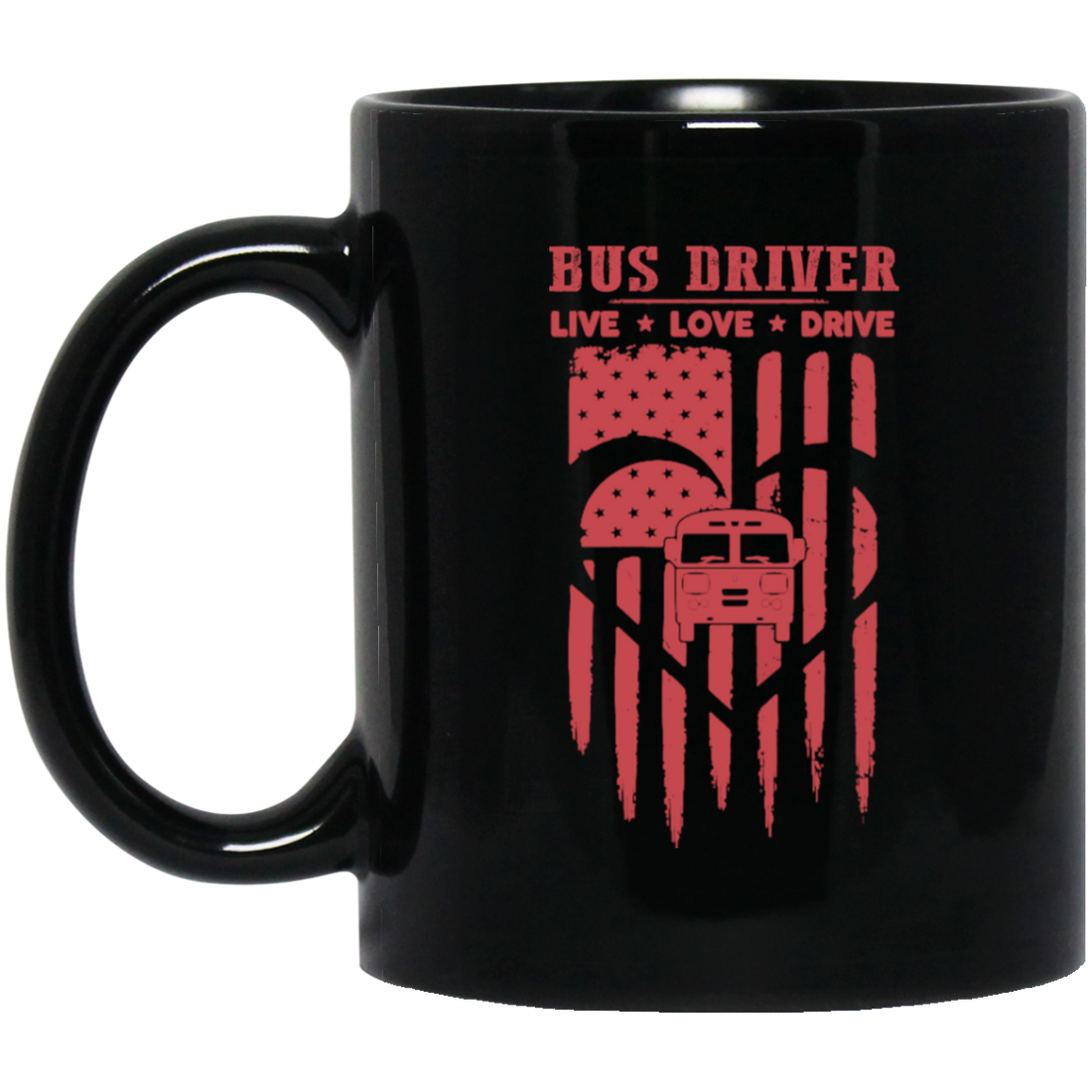 Bus Driver, Live Love Drive, Love By Heart, Love Bus Driver, Driver Gift Black Mug