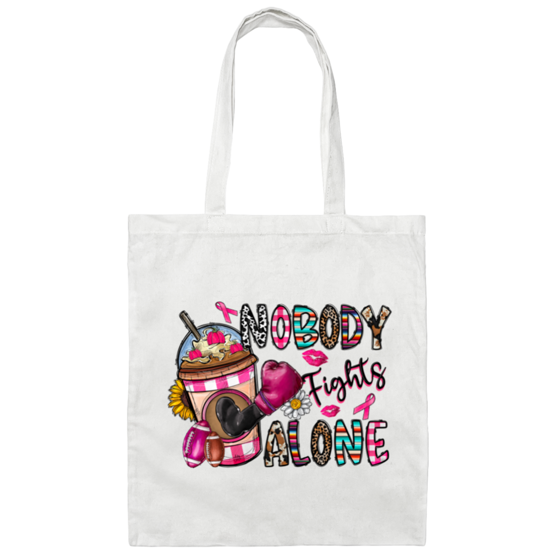 Cancer Ribbon Nobody Fight Alone Please Together Canvas Tote Bag