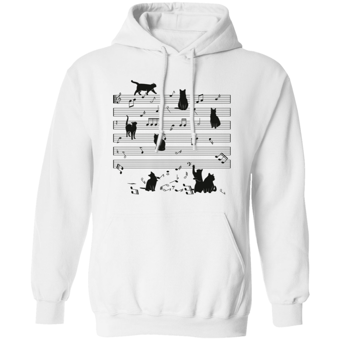 Cat Funny Music Note, Party Lover, Black Cat Love Music Pullover Hoodie