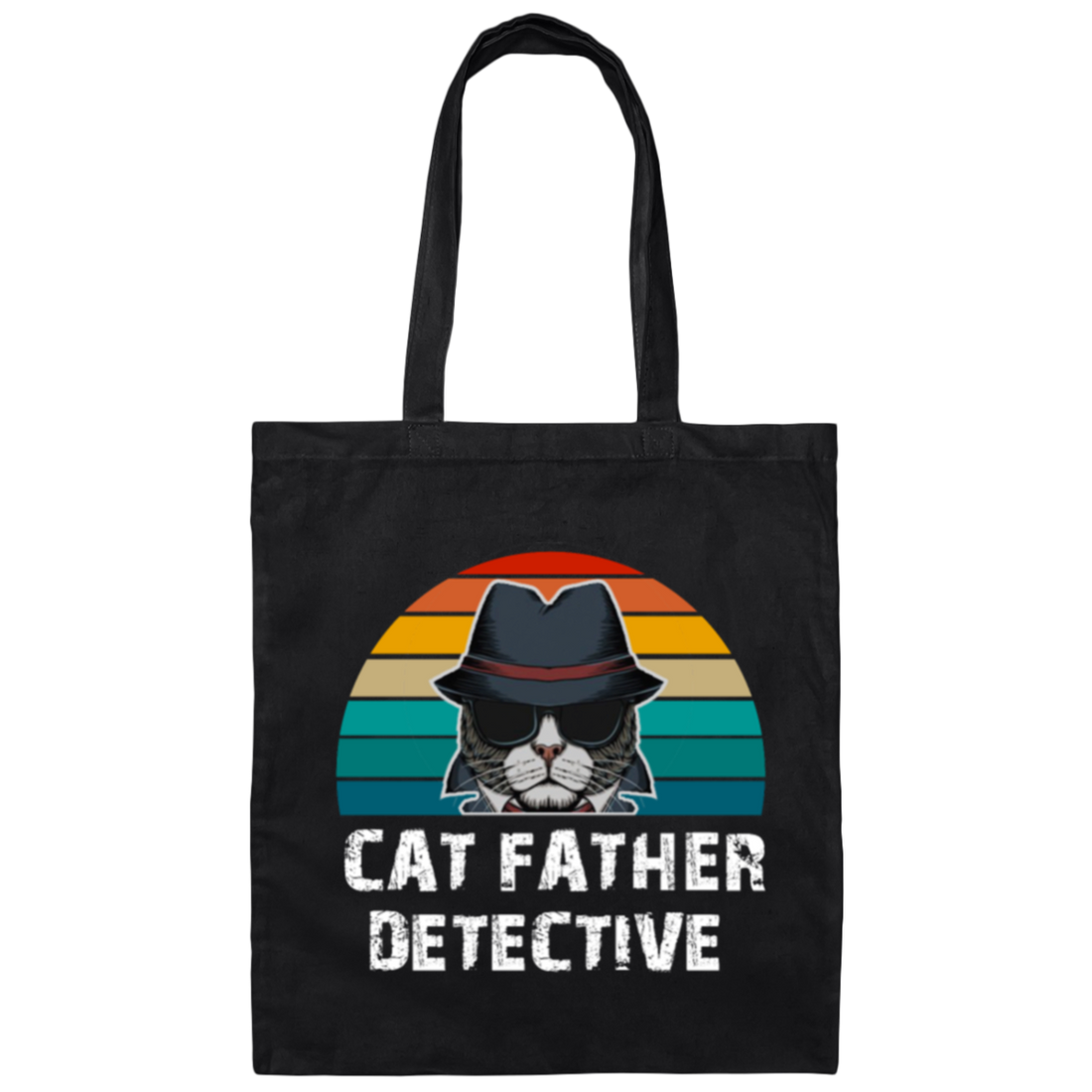 Cat Father Detective Funny, Cat Lover Canvas Tote Bag