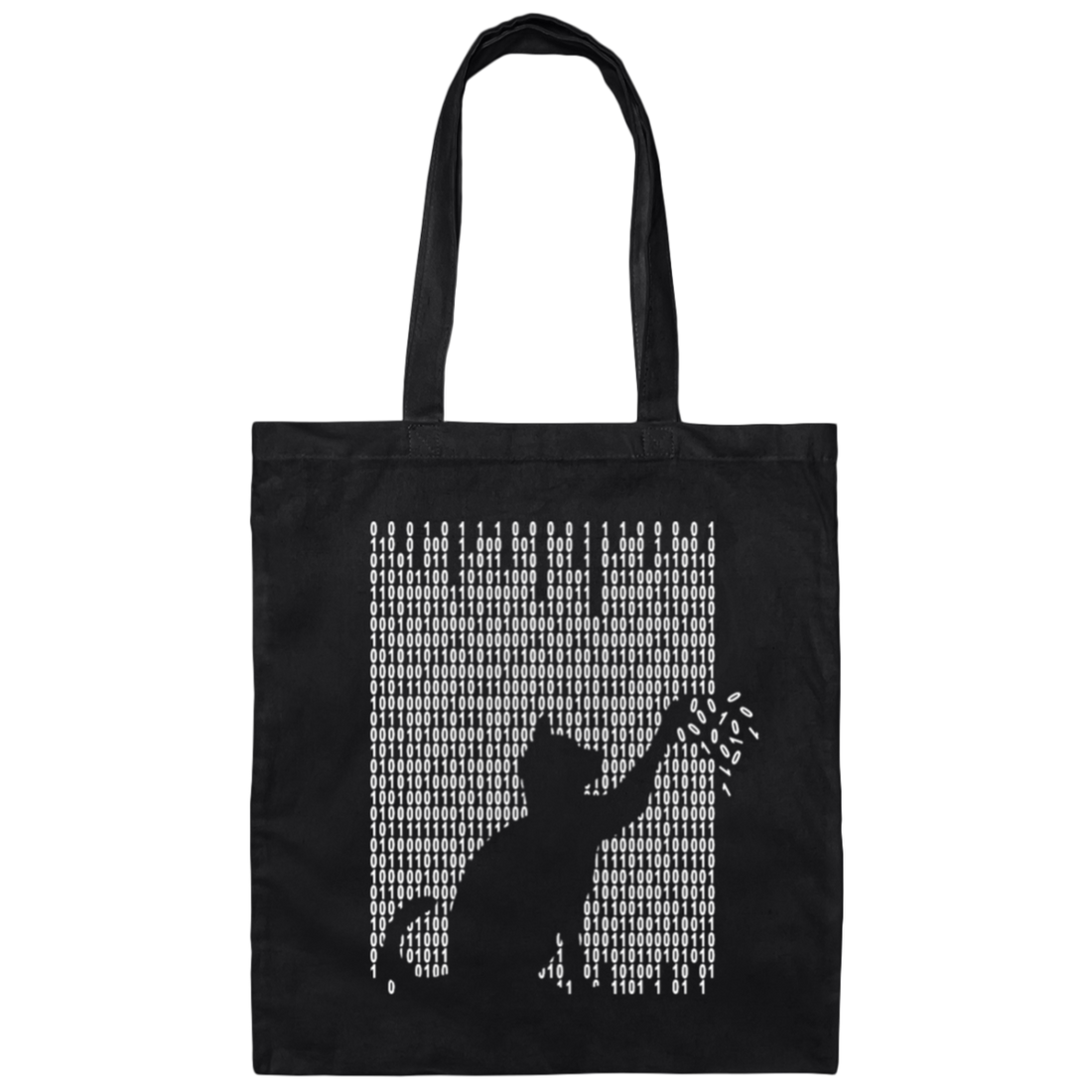 Cat Is Playing With The Binarycode, Kawaii Cat, Love Cat, Love Binarycode Canvas Tote Bag