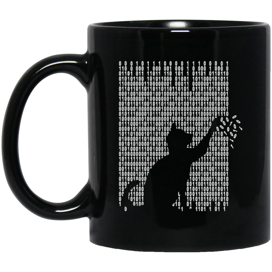 Cat Is Playing With The Binarycode, Kawaii Cat, Love Cat, Love Binarycode Black Mug