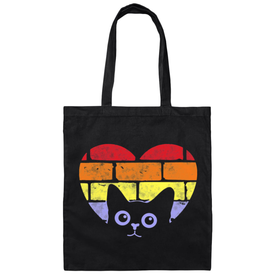 Cat In My Heart, Cat And Wall Retro Style, Cat Lover Gift, Retro Cat Canvas Tote Bag