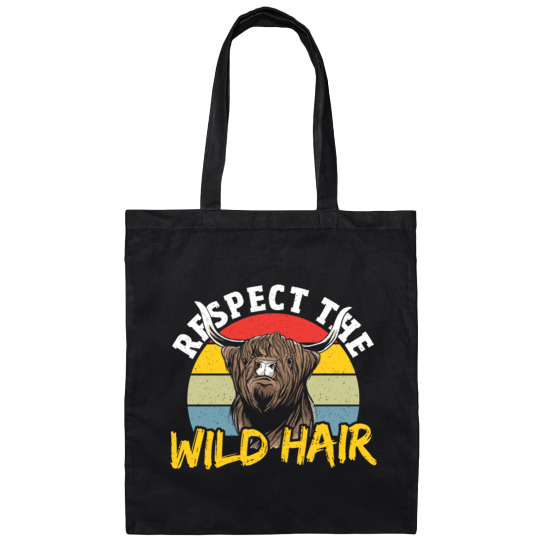 Cattle Cow, Respect The Wild Hair, Retro Cow Gift, Cow Wildlife, Love Cow Canvas Tote Bag