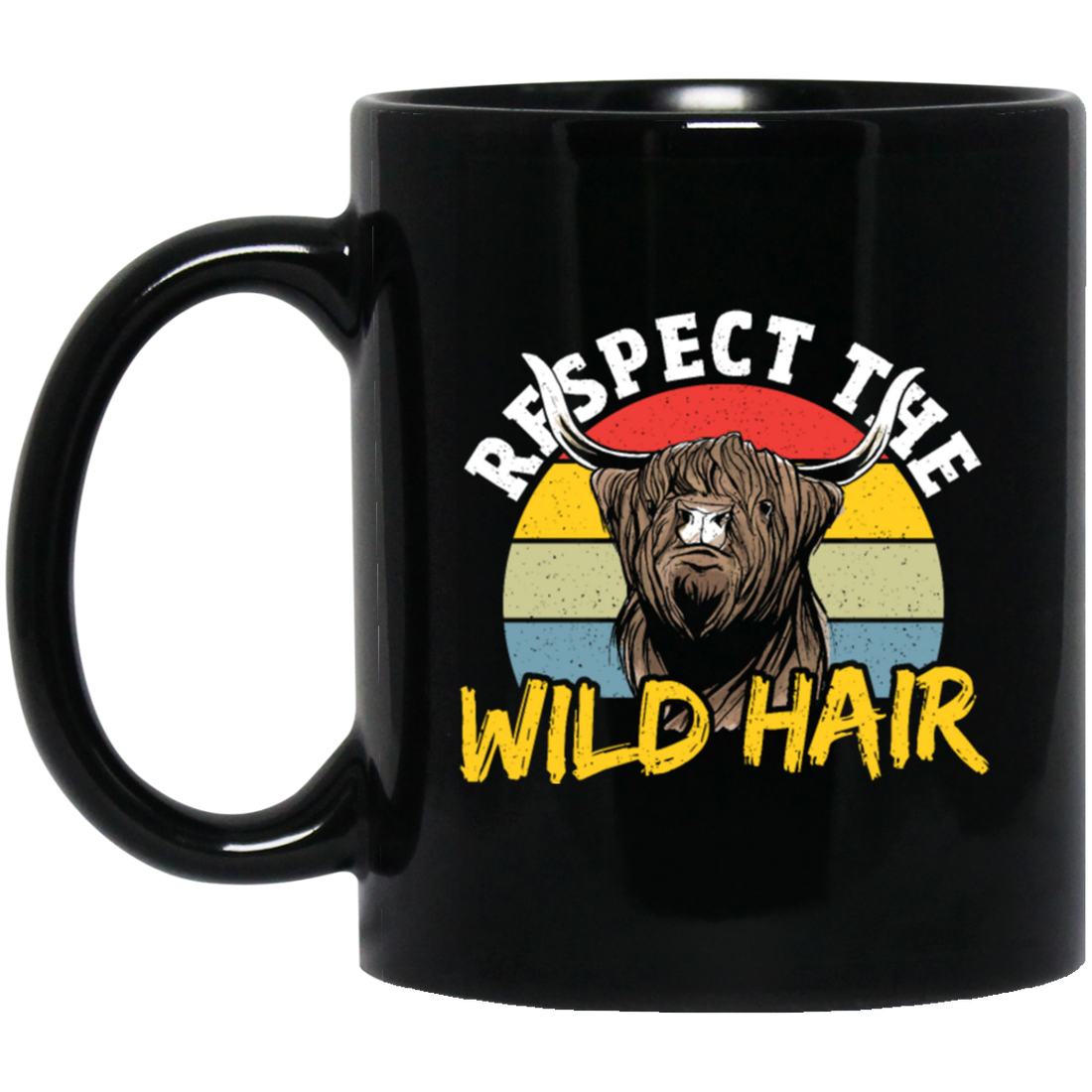 Cattle Cow, Respect The Wild Hair, Retro Cow Gift, Cow Wildlife, Love Cow Black Mug