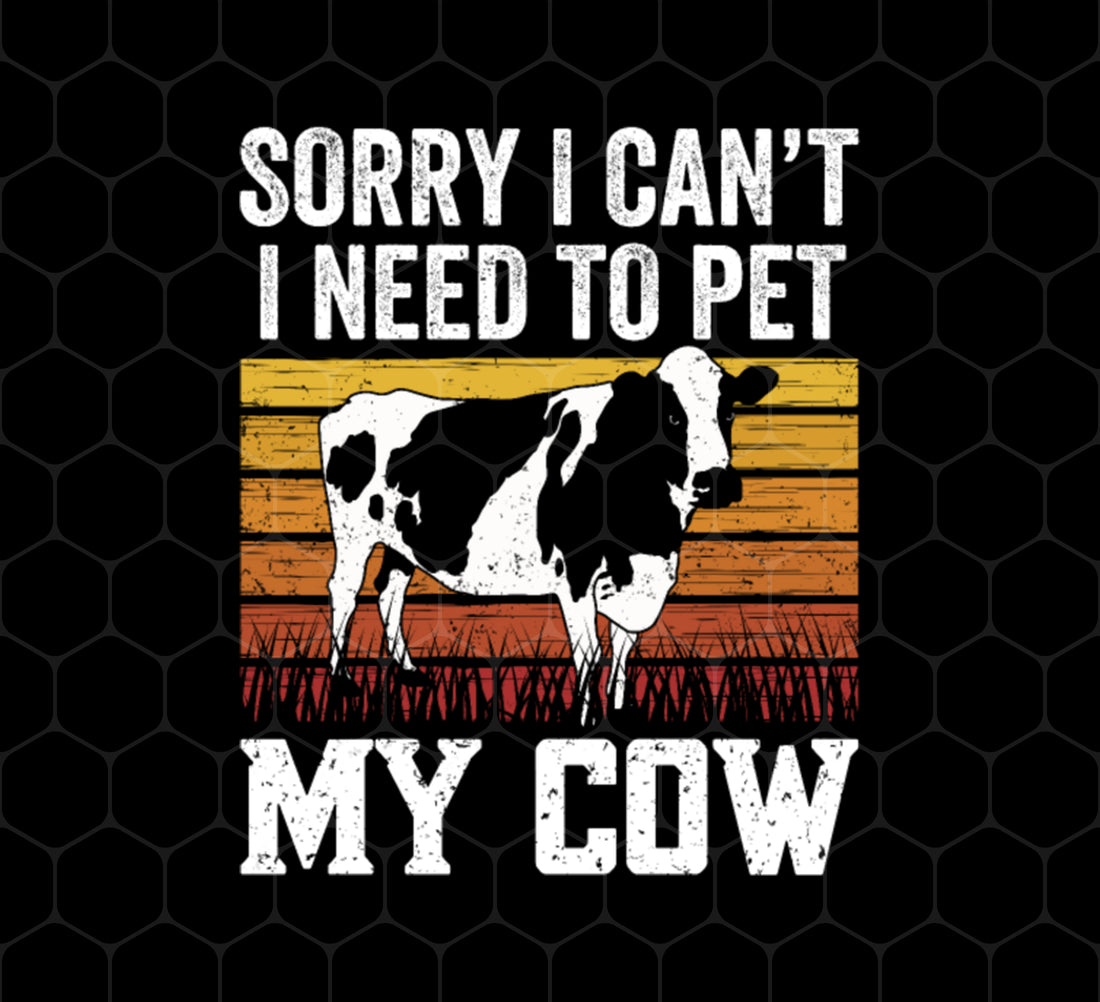 Cow Lover, Sorry I Cannot, I Need To Pet My Cow, Retro Cow Gift, Best Cow, Png Printable, Digital File