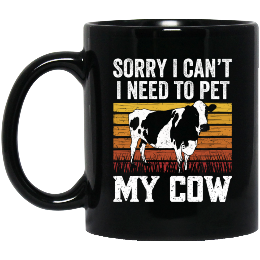 Cow Lover, Sorry I Cannot, I Need To Pet My Cow, Retro Cow Gift, Best Cow Black Mug