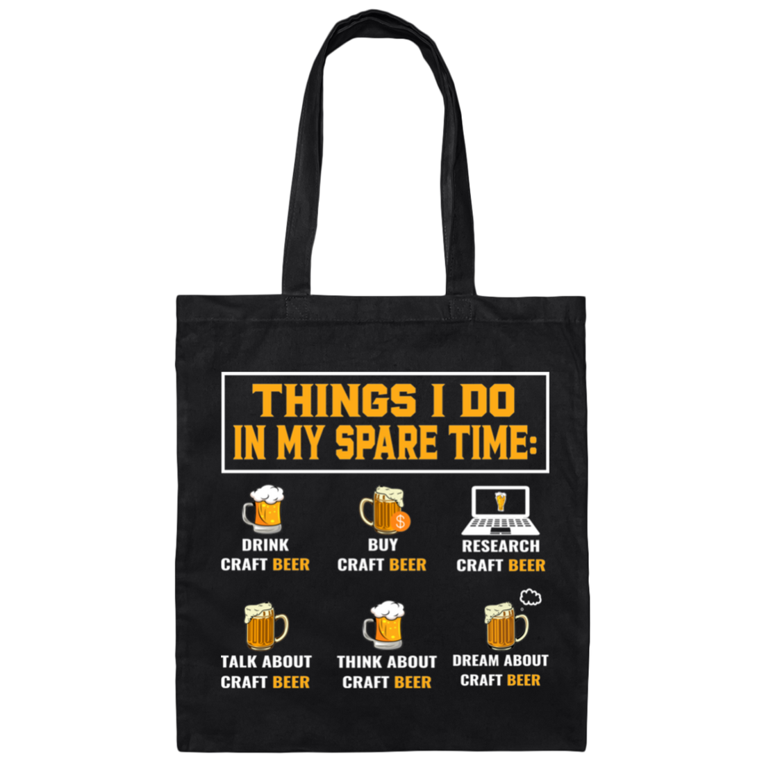 Craft Beer, Things I Do In My Spare Time, Beer Glass Canvas Tote Bag