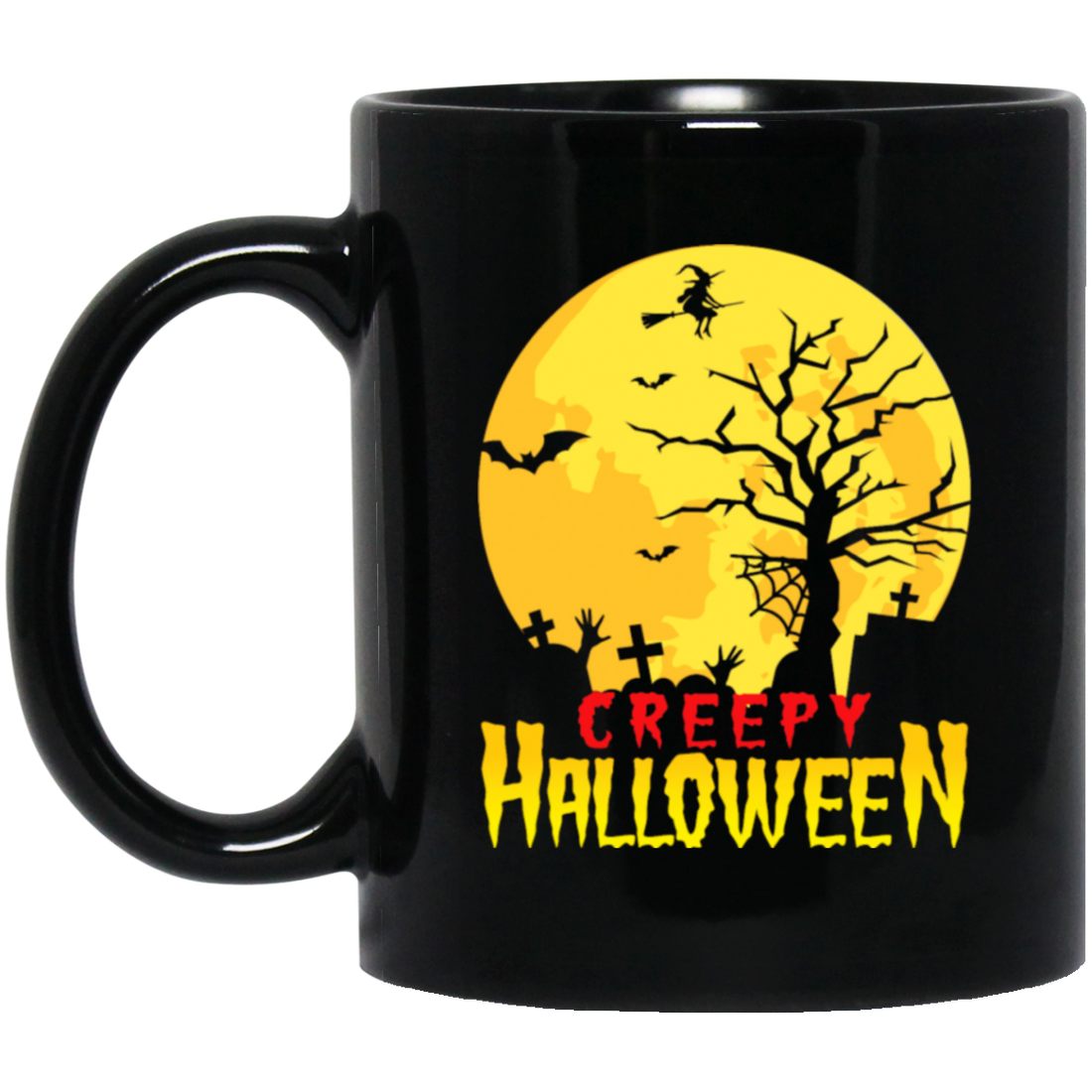 Creepy Gift, Funny Ghost Witch, Funny Halloween, Halloween Gift Black Mug