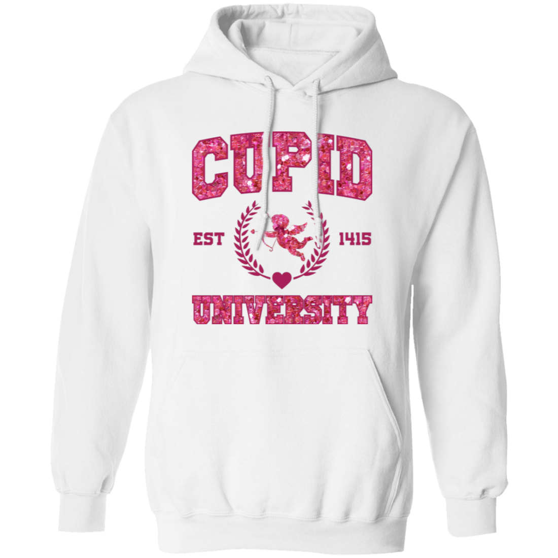 Cupid University, Est 1415, Pink Glitter Cupid, Glitter Valentine, Valentine's Day, Trendy Valentine Pullover Hoodie