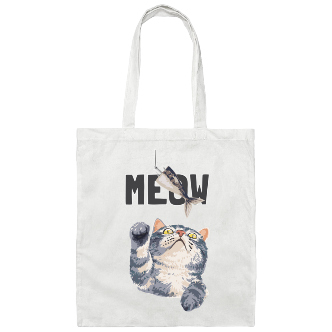 Cute Meow, Cute Stupid Cat, Cat Catch Fishing Rod Canvas Tote Bag