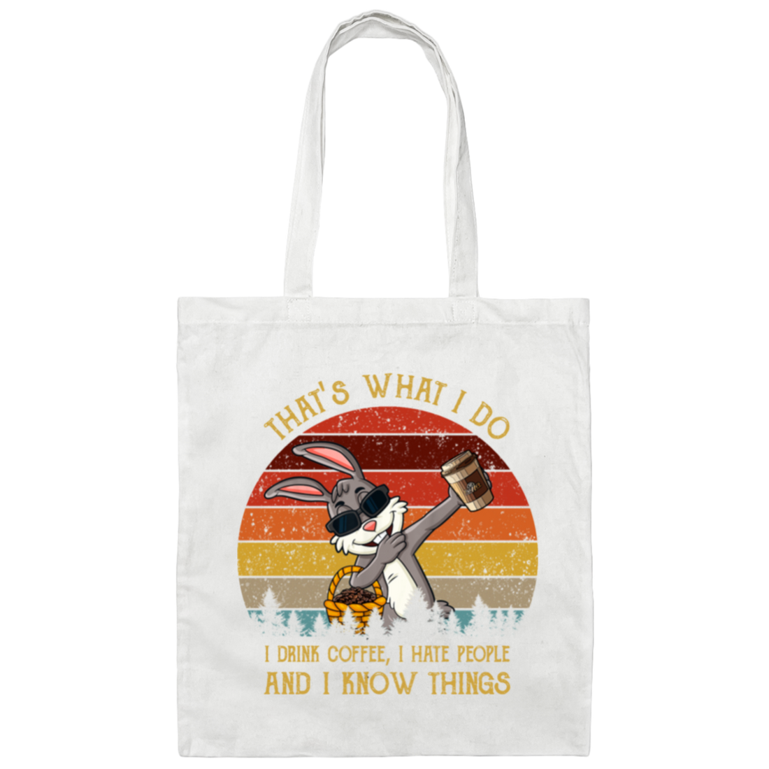 Cute Rabit, That's What I Do, I Drink Coffee, I Hate People, I Know Things Canvas Tote Bag