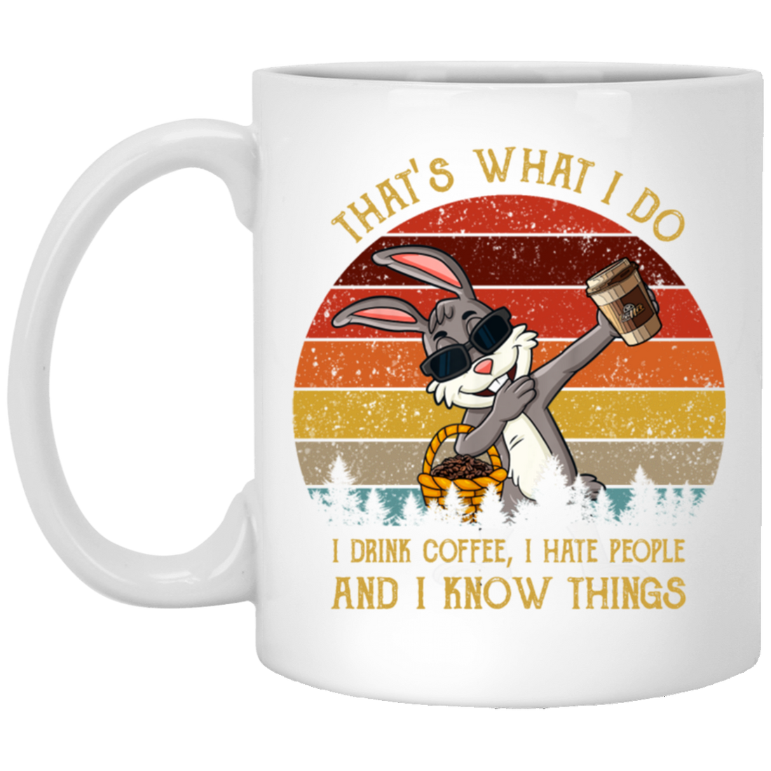 Cute Rabit, That's What I Do, I Drink Coffee, I Hate People, I Know Things White Mug