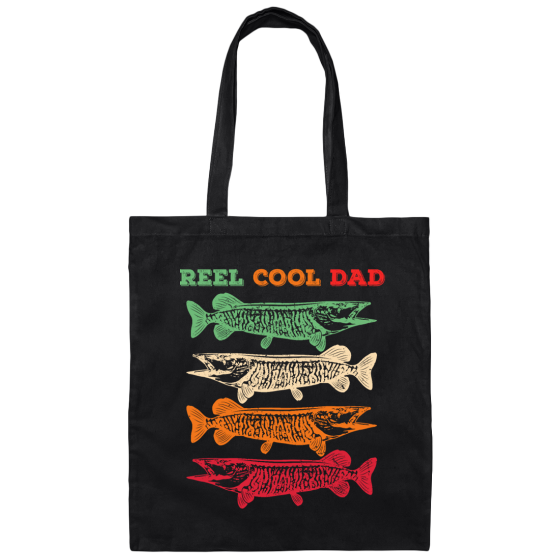 Dad Fishing, Retro Dad Fishing Gift, Reel Cool Dad Canvas Tote Bag