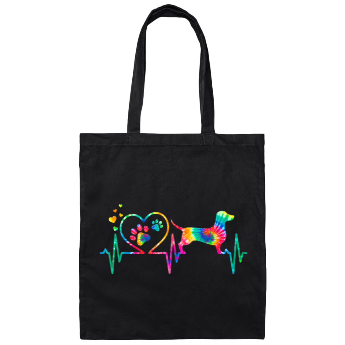 Dachshund Doxie Weenie Mom Dad Heartbeat Tie Dye Dog Canvas Tote Bag