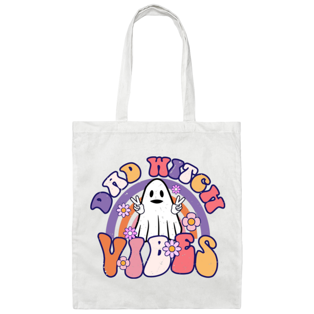 Dad Witch Vibes, Ghost Halloween, Groovy Halloween Canvas Tote Bag