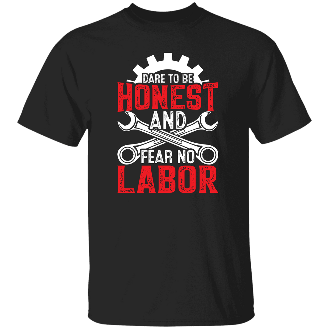 This mechanic-inspired retro graphic features "Dare To Be Honest And Fear No Labor" printed over...