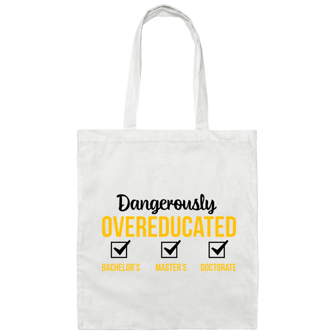 Dangerously Overeducated, Bachelor, Master, Doctorate Canvas Tote Bag