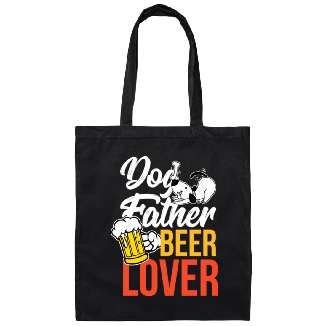 Dog Father, Beer Lover, Animal Lover, Dog Lover, Dog And Beer, Dog Dad Canvas Tote Bag