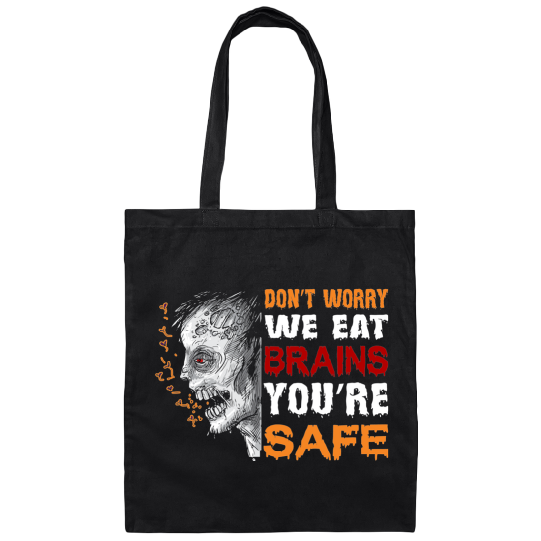 Don't Worry We Eat Brains, You're Safe, Horror Zombie Canvas Tote Bag