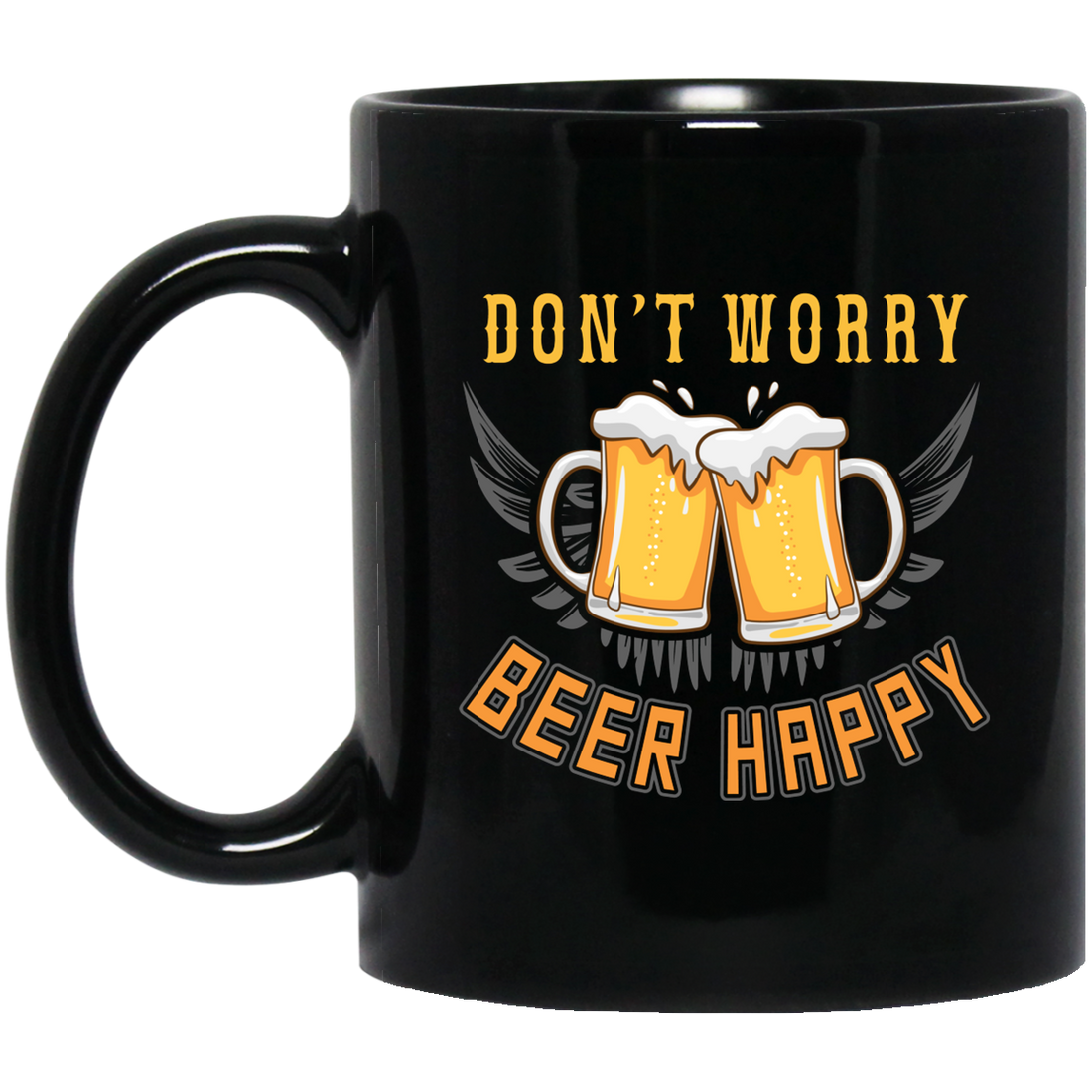Don't Worry, Beer Happy, Cheer Up, Beer Retro Black Mug