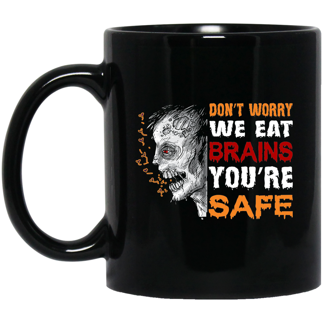 Don't Worry We Eat Brains, You're Safe, Horror Zombie Black Mug