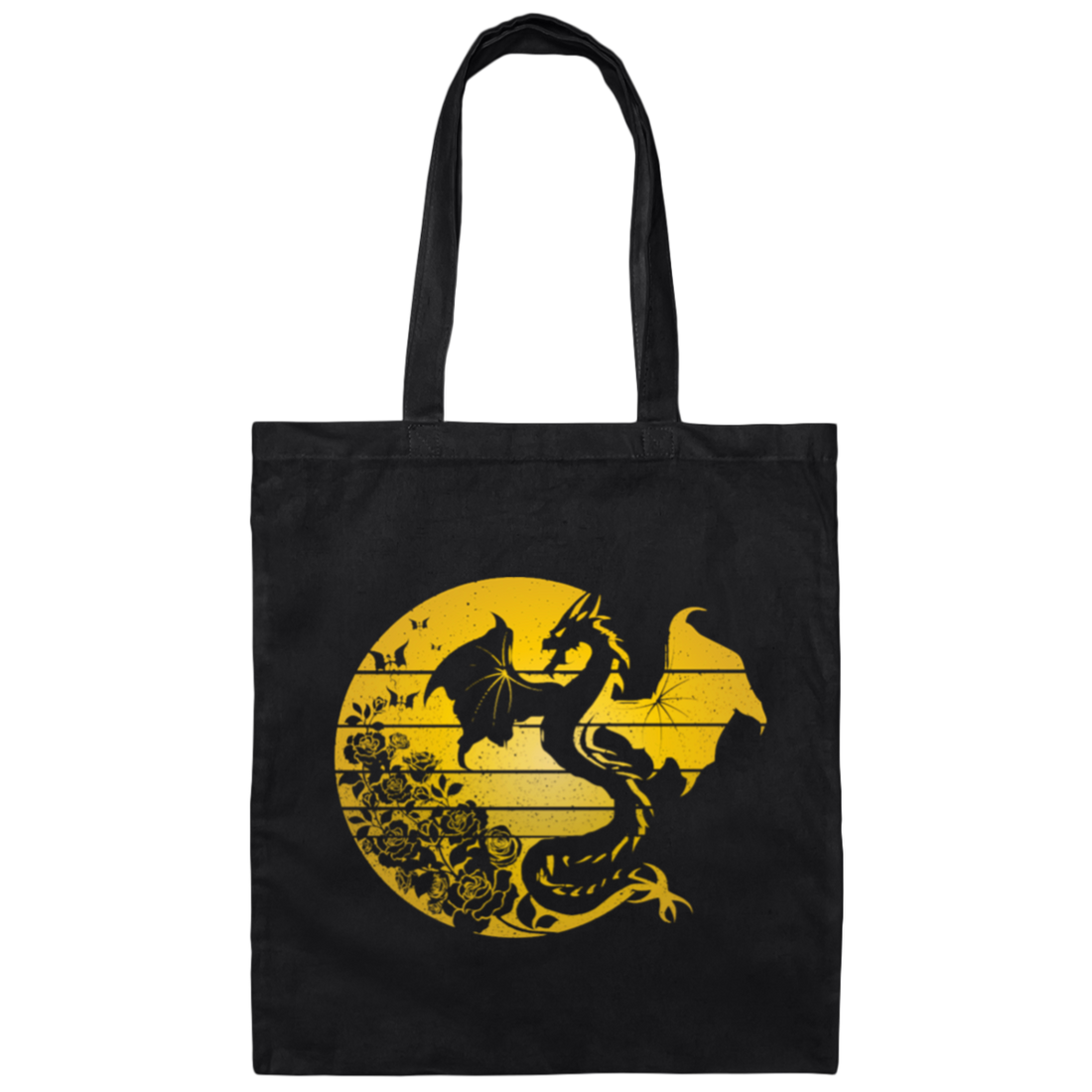 Dragon Flowers Vintage, Gold Dragon, Love Dragon, Flower In Circle Canvas Tote Bag