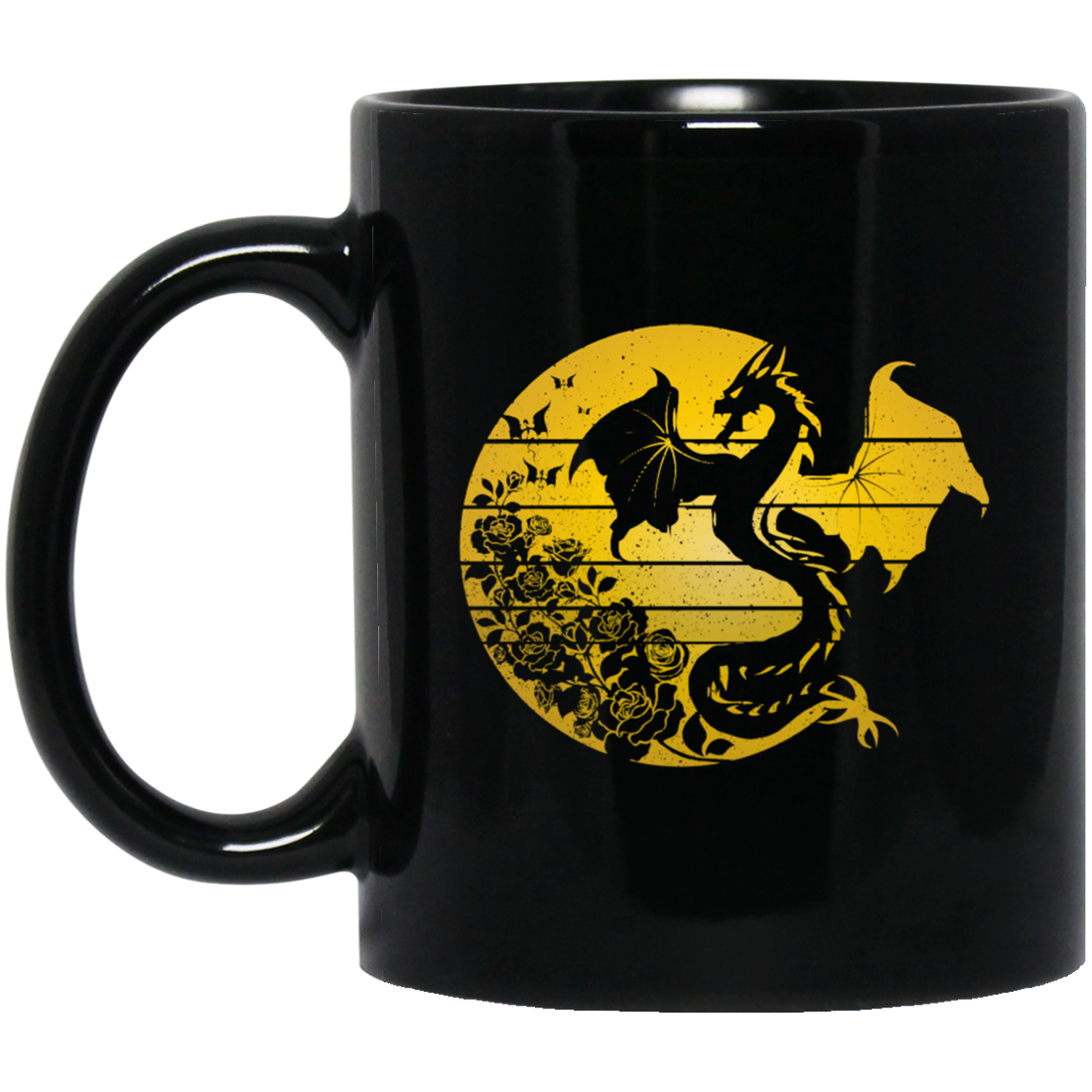 Dragon Flowers Vintage, Gold Dragon, Love Dragon, Flower In Circle Black Mug