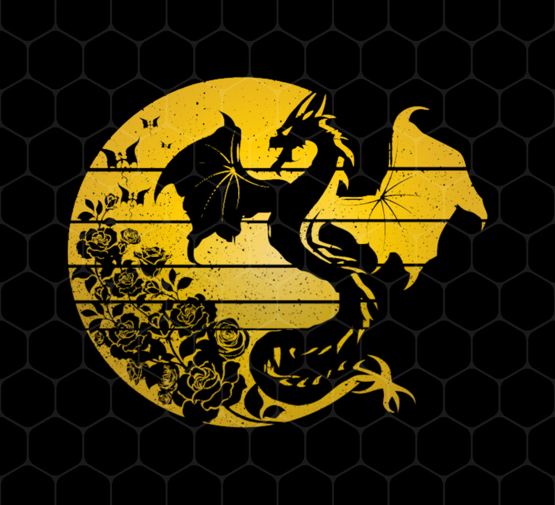 Dragon Flowers Vintage, Gold Dragon, Love Dragon, Flower In Circle, Png Printable, Digital File