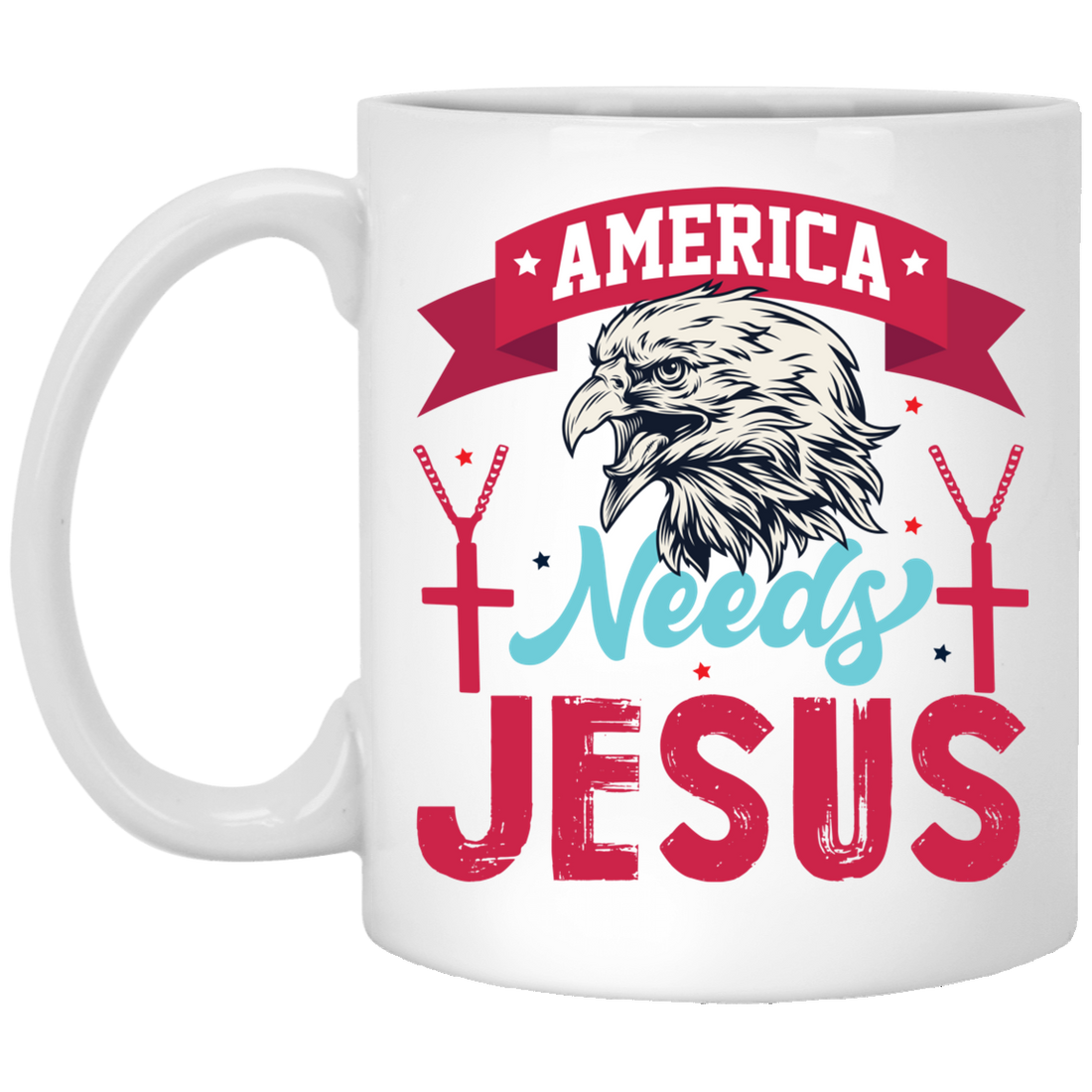 Eagle Icon, American Needs Jesus, American Eagle, Jesus Love Gift White Mug