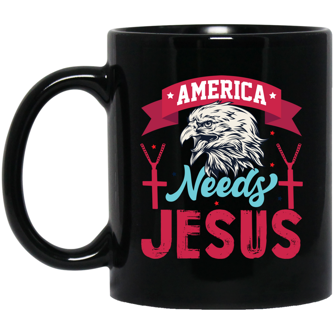 Eagle Icon, American Needs Jesus, American Eagle, Jesus Love Gift Black Mug
