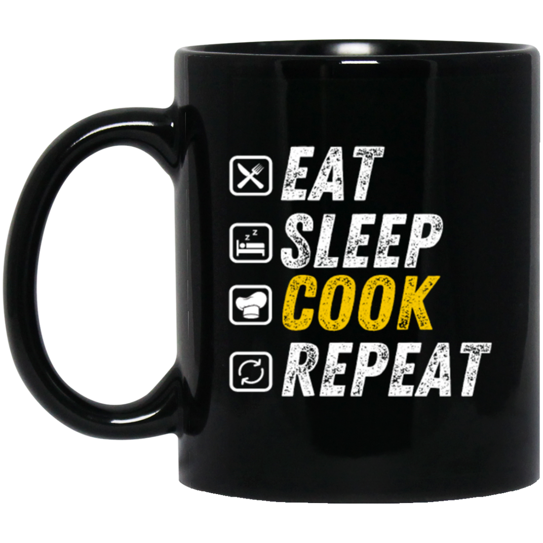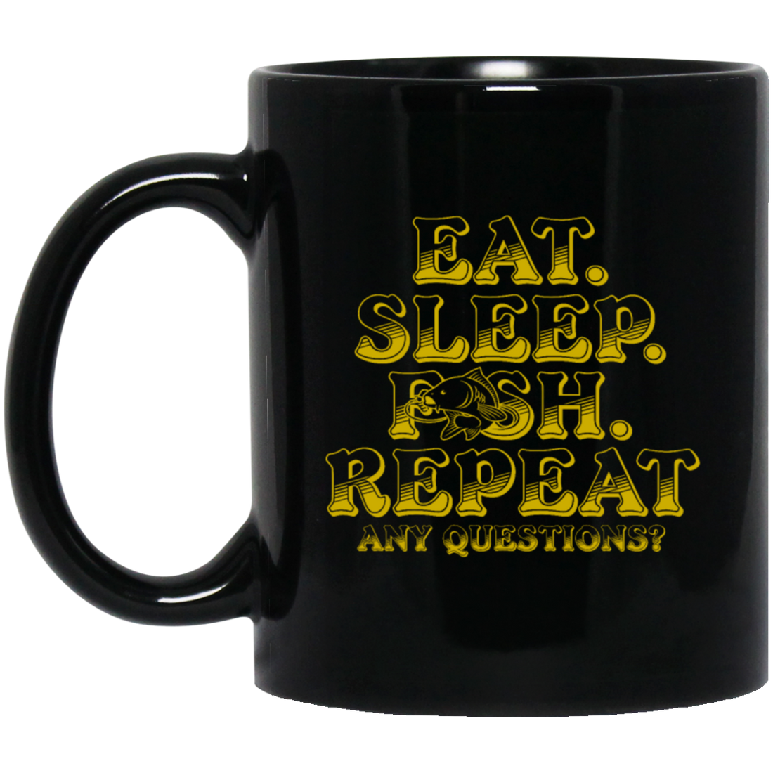 Eat Sleep Fish Repeat, Funny Cool, Fisherman Fish, Love Fishing Gift Black Mug