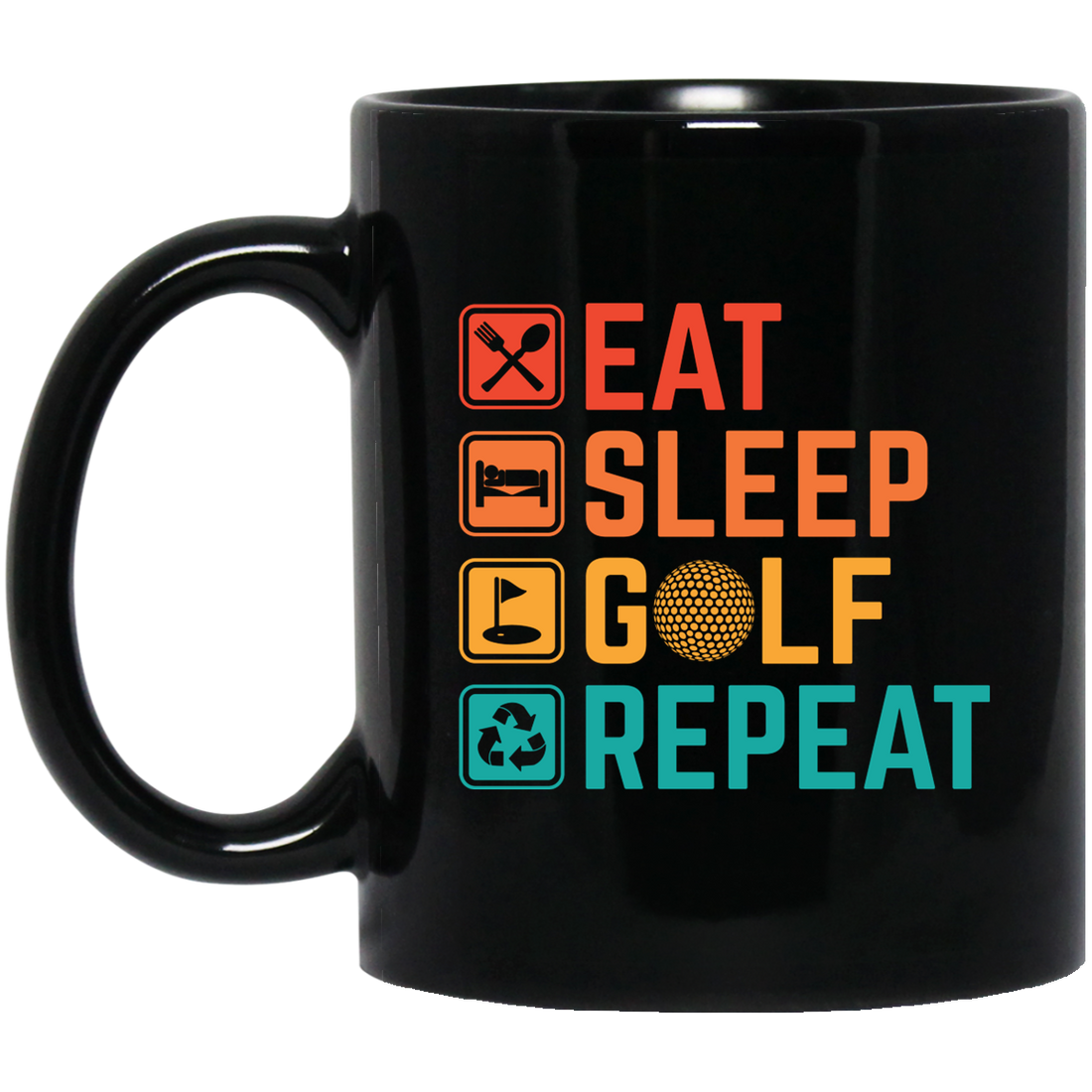 Eat Sleep Golf Repeat, Golfing, Golf, Retro Golf, Legendary Golf Black Mug