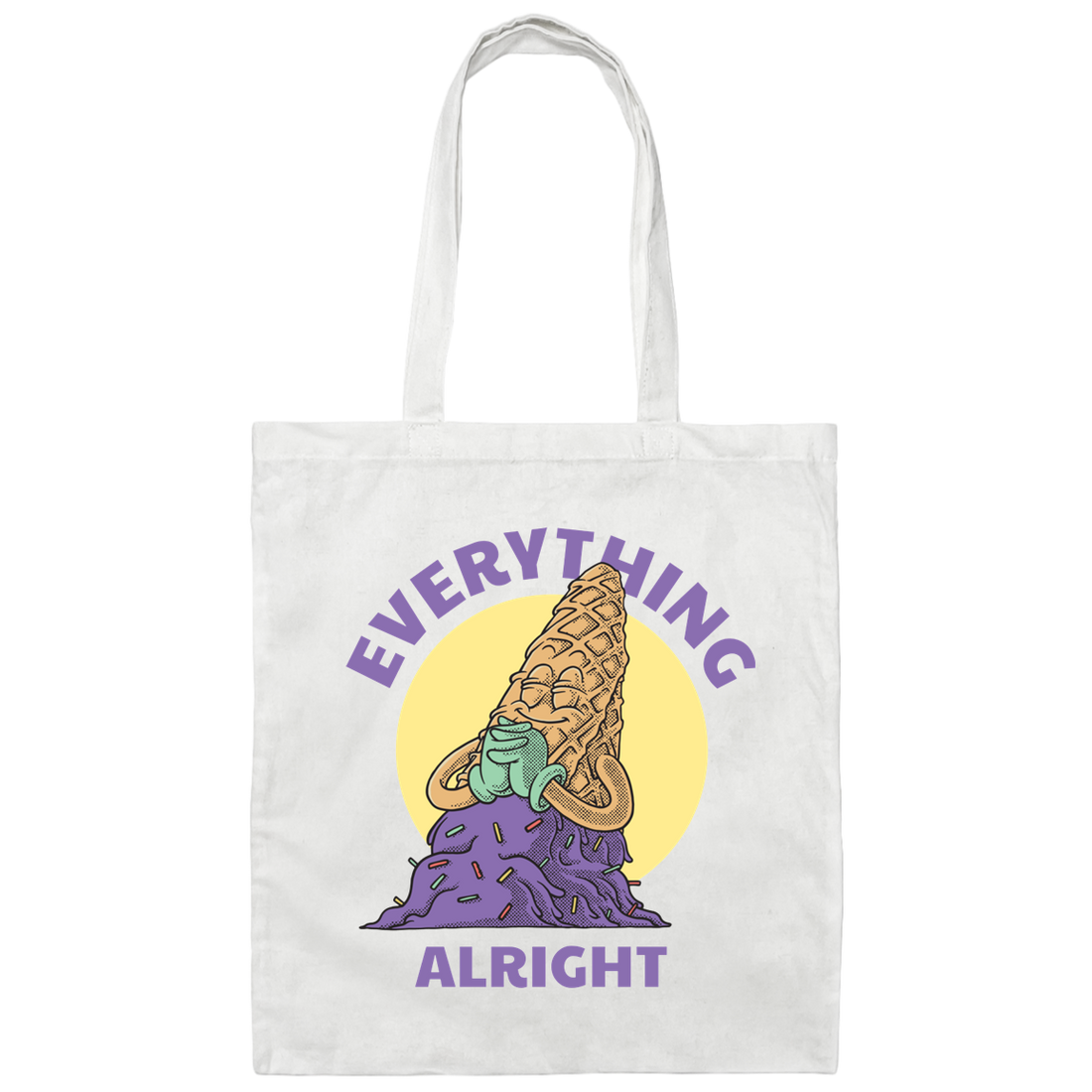 Everything Is Alright, Cartoon Smiling Spilled Ice Cream Canvas Tote Bag