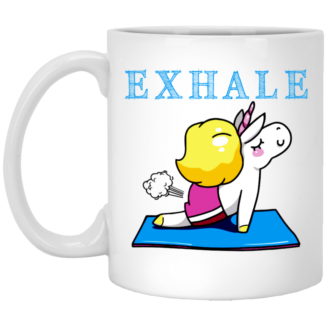 Exhale Unicorn Yoga, Please Exhale, Funny Yoga, Cute Unicorn Do Yoga White Mug