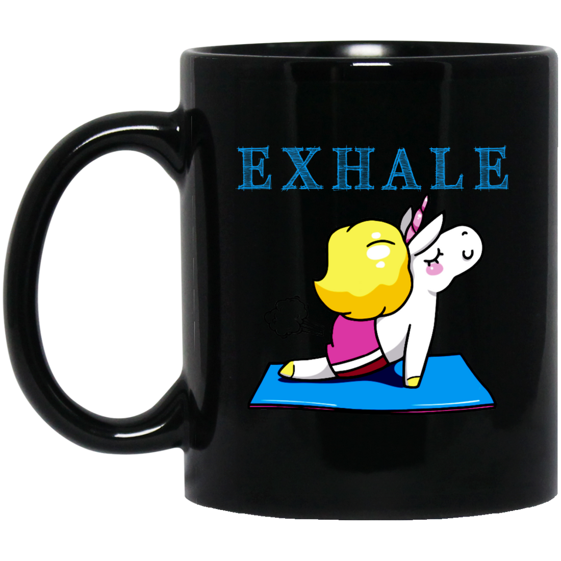 Exhale Unicorn Yoga, Please Exhale, Funny Yoga, Cute Unicorn Do Yoga Black Mug