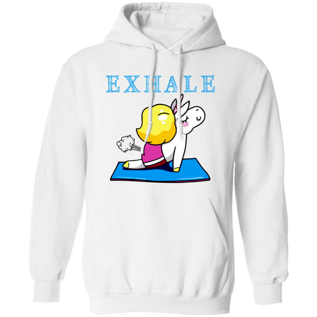Exhale Unicorn Yoga, Please Exhale, Funny Yoga, Cute Unicorn Do Yoga Pullover Hoodie
